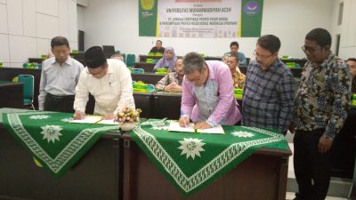 LINEAR.CO.ID I BANDA ACEH – Fakultas Ekonomi Universitas Muhammadiyah Aceh (UNMUHA) berkomitmen untuk berkontribusi meningkatkan sumberdaya manusia di industri pasar. Komitmen itu diwujudkan dengan penandatanganan MoU bersama Perkumpulan Profesi Pasar Modal Indonesia (PROPAMI) dan Lembaga Sertifikasi Profesi Pasar Modal (LSPPM). Acara ini digelar pada Jum’at, 10 Februari 2023 di ruang pertemuan rektorat Lantai 2.