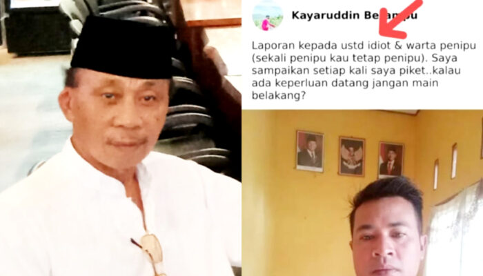 Unggahan Kepala Dusun di akun Facebook nya, terkesan menghina tokoh agama dan wartawan. Pasalnya, ia menuliskan dengan kata “Laporan kepada ustad idiot & warta penipu (sekali penipu kau tetap penipu). Saya sampaikan setiap kali saya piket ..kalau ada keperluan datang jangan main belakang?”