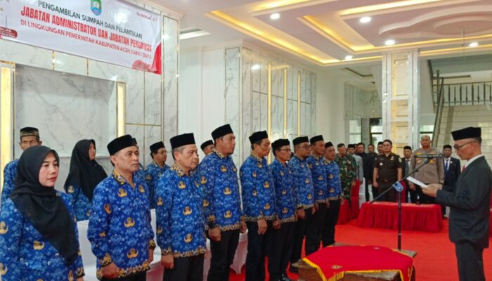 LINEAR.CO.ID| ACEH BARAT DAYA – Wakil Bupati Aceh Barat Daya (Abdya) Zaman Akli melantik dan mengambil sumpah terhadap 17 pejabat eselon III dan IV yang berlangsung di Lobi Setdakab kabupaten setempat, Rabu (4-3-2026).