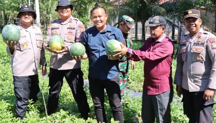 LINEAR.CO.ID | ACEH BARAT DAYA – Kapolres Aceh Barat Daya (Abdya) AKBP Agus Sulistianto SH SK beserta pejabat utama (PJU) memanen buah semangka di kebun Binaan Bhabinkamtibmas (Bang Bhabin) di di Dusun Setia Budi, Gampong Ujong Tanoh, Kecamatan Setia, kabupaten setempat, Kamis (23-4-2026).